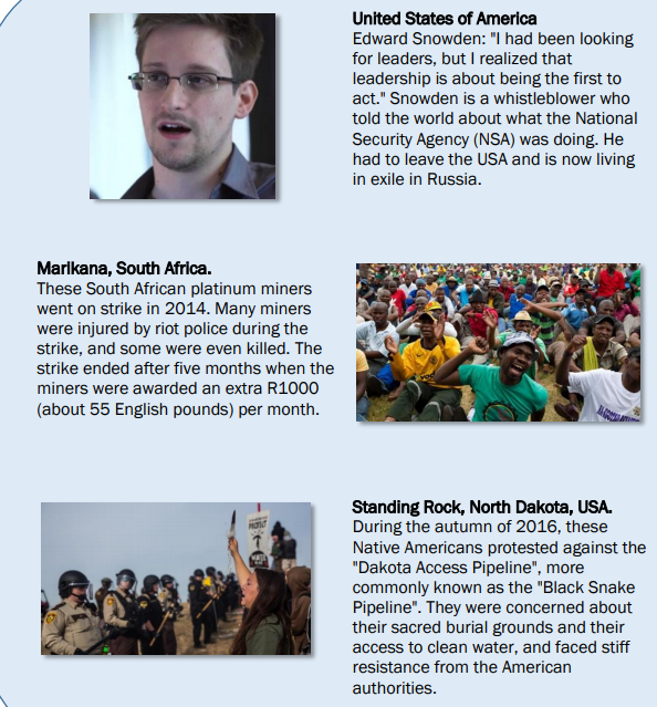 Look at the 3 examples below. Do some research online and write about all three. Has anything changed since this was written two years ago? Do you have any other examples of people standing up for what they believe is right?